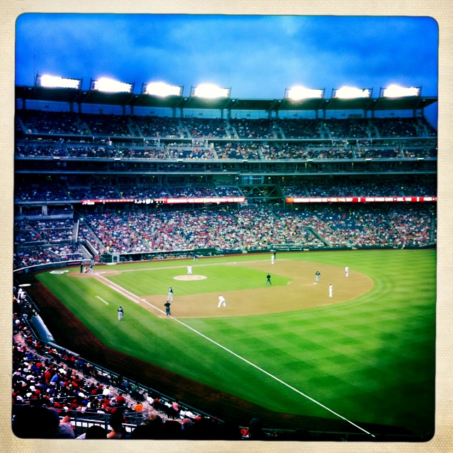 first, i finally saw nationals wunderkind pitcher stephen strasburg in action. and, as baseball luck would have it, the game was against the atlanta braves and my first baseball love, chipper jones. chipper jones who is retiring this season. so it didn't actually bother me that the nats blew a 9-0 lead to lose 10-11 in extra innings. because a win for chipper is a win for all of us.